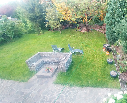 Wir haben ökologische Aspekte immer im Hinterkopf gehabt und sie als Teil des Gärtnerns gesehen. Der Quellstein ist zum Beispiel ein Feuchtbiotop. Größere Wurzeln und größere Stämme haben wir hinter den Kompostern zu einem Totholzhaufen gestapelt. Mischkultur auf dem Hochbeet sorgt für mehr Abwechslung. Eine Wildblumenwiese unter den Obstbäumen gefällt uns besser als Rasen.